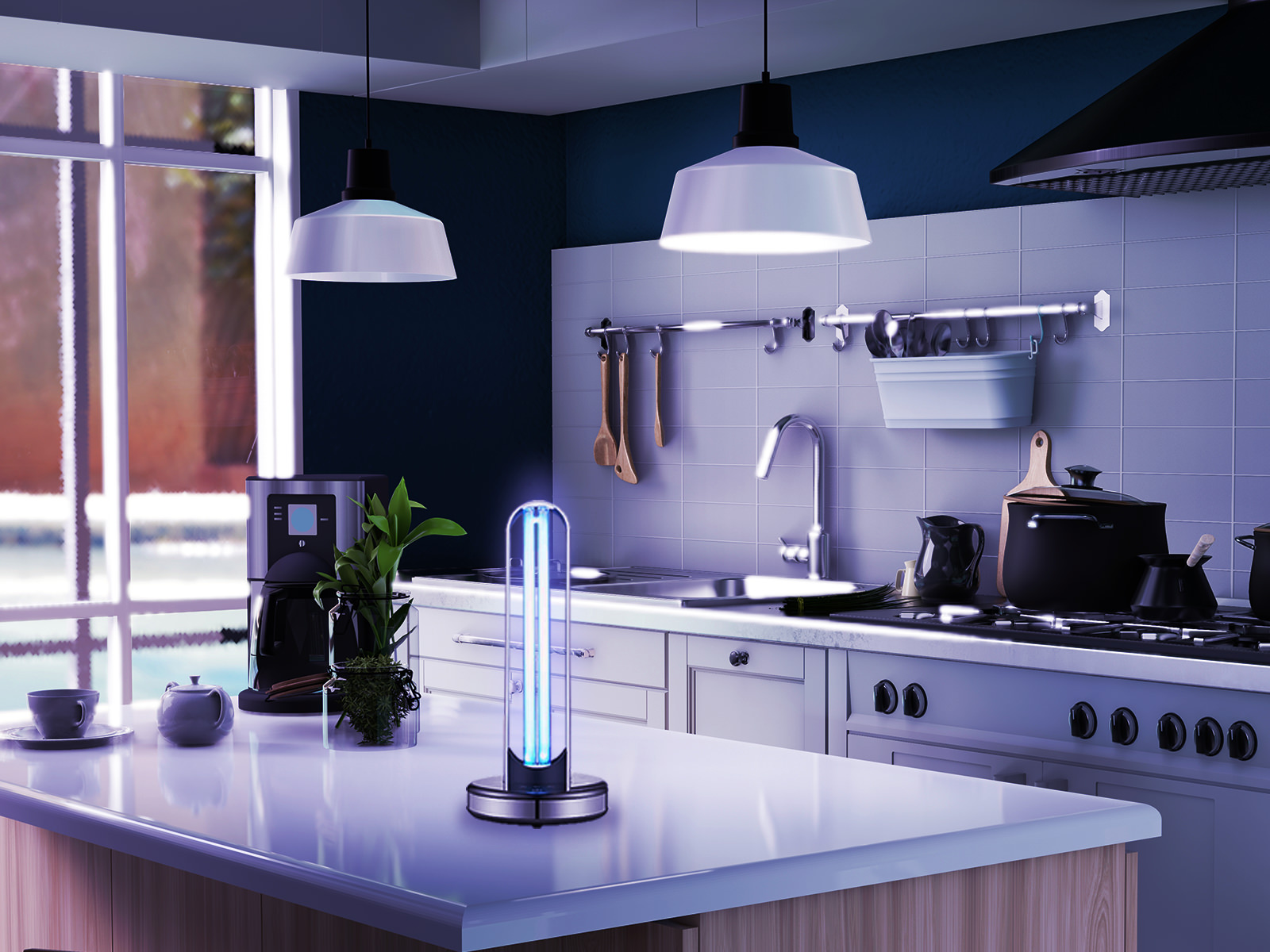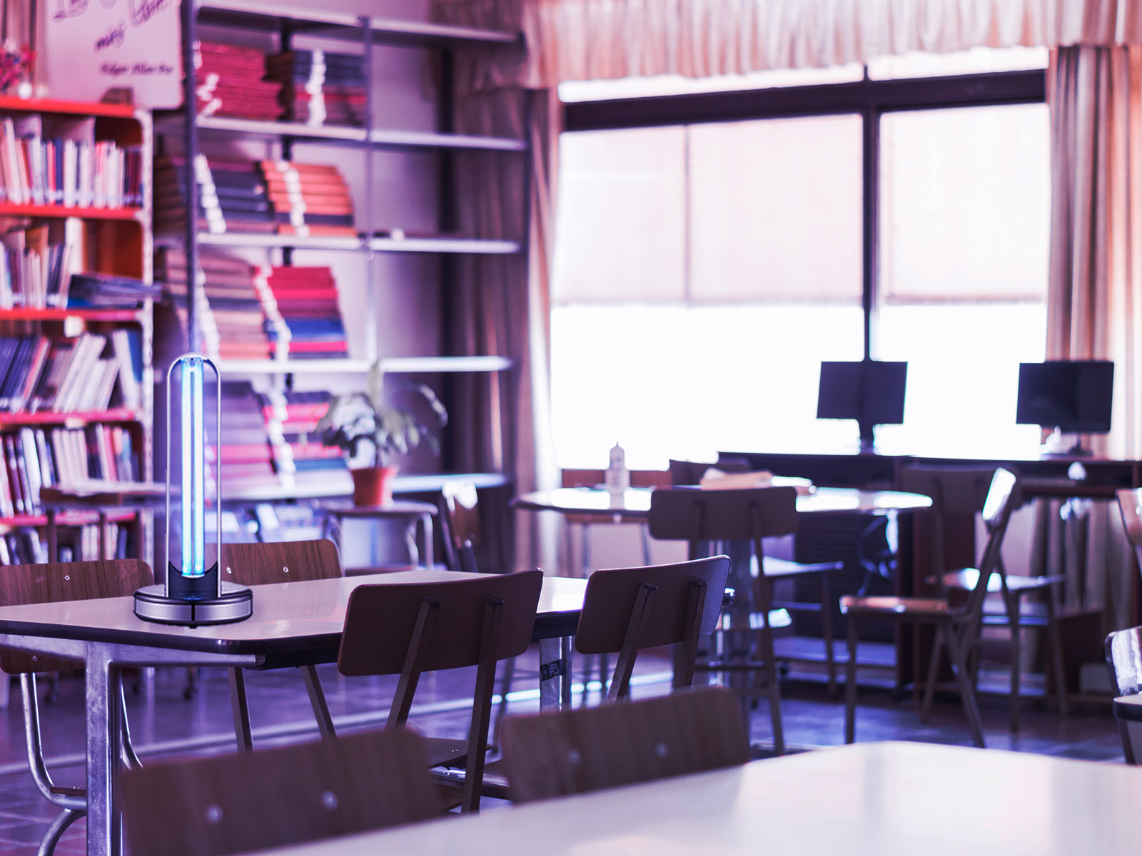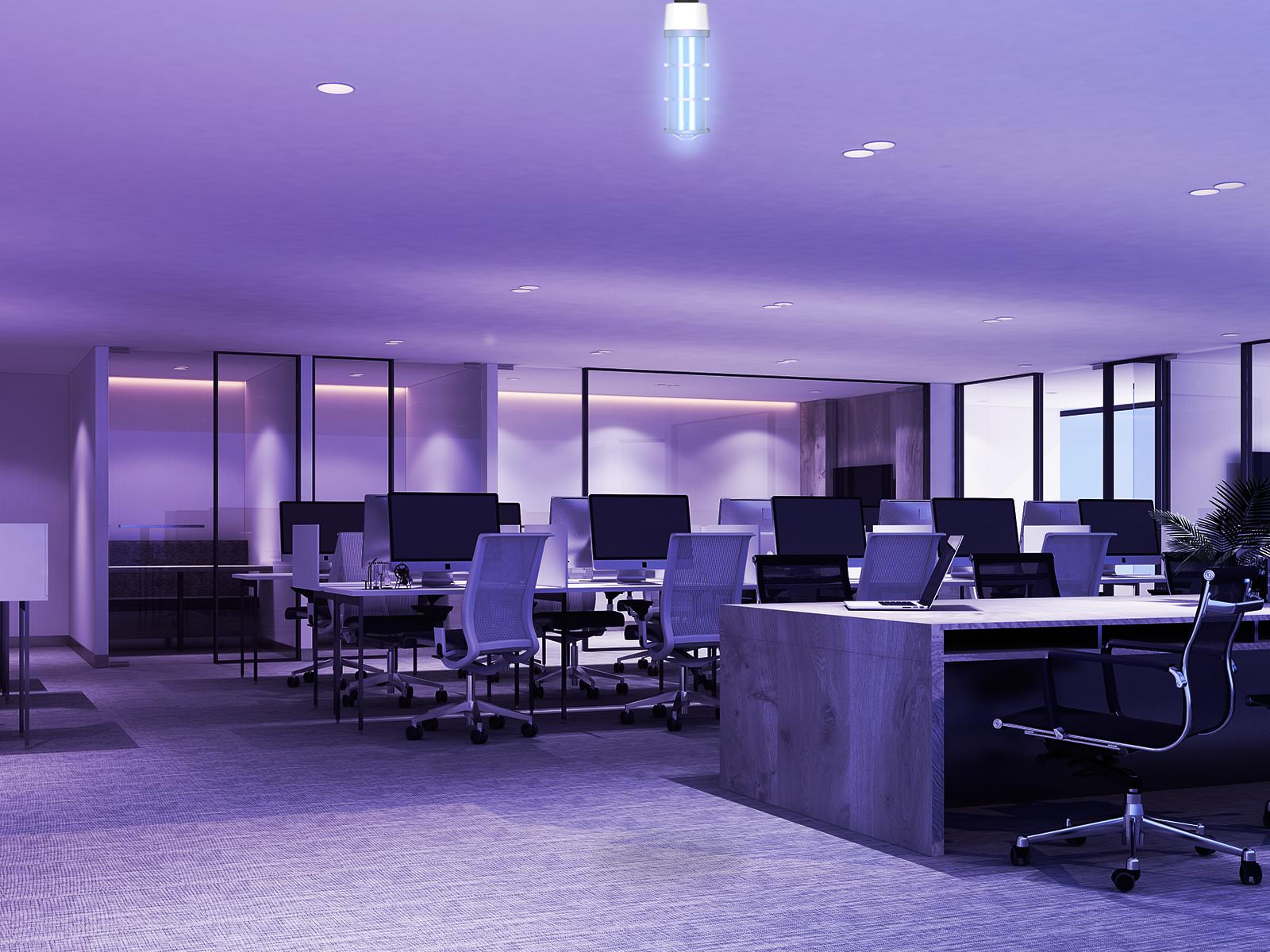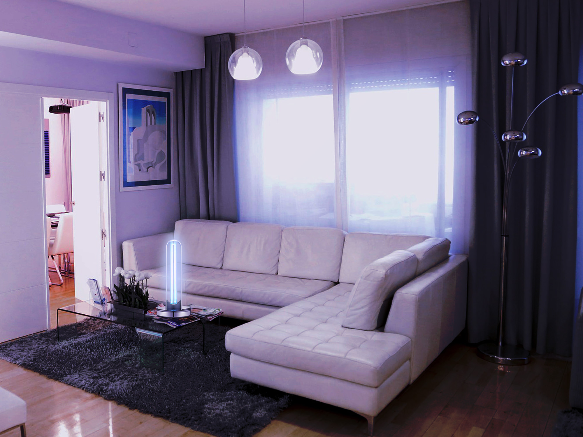 La luz UV, específicamente la UV-C denominada como germicida, penetra a las membranas celulares de los microorganismos y altera su secuencia de ADN destruyéndolos y causando una descontaminación segura del espacio.